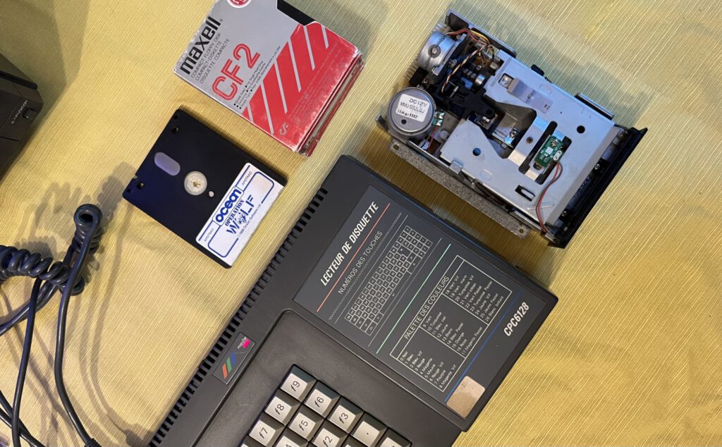 Récemment, j’ai exhumé ce CPC rescapé de la boîte où il dormait depuis des années. Je l’ai démonté, nettoyé pièce par pièce, puis branché sur un moniteur 1080p. Si tout semble OK et qu’il m’affiche son sublime écran bleu, Lomotive Basic 1.1, son lecteur de disquette, hélas, refuse toujours de fonctionner. Même si je n’ai pas renoncé à le réparer, je prévois à terme d’upgrader ce CPC avec un Gotek externe ou mieux encore, un USIfAC II…