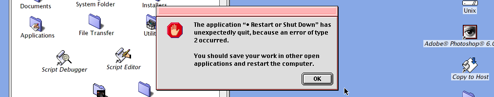 “I am deeply disappointed by Mac OS… It might be simple to use, but as for stability… forget about it. My Mac crashes 2 or 3 times a day, minimum… When I use my graphics tablet in Photoshop, when I use Outlook Express 4.5 or Dreamweaver… It’s 12:30 PM right now… the Mac has been on since 10:00 AM, and it already crashed once for no reason… In my office, there’s also a PC running Win 98… that one crashes maybe once a week at worst. […] Come on Steve, OS X quick !”