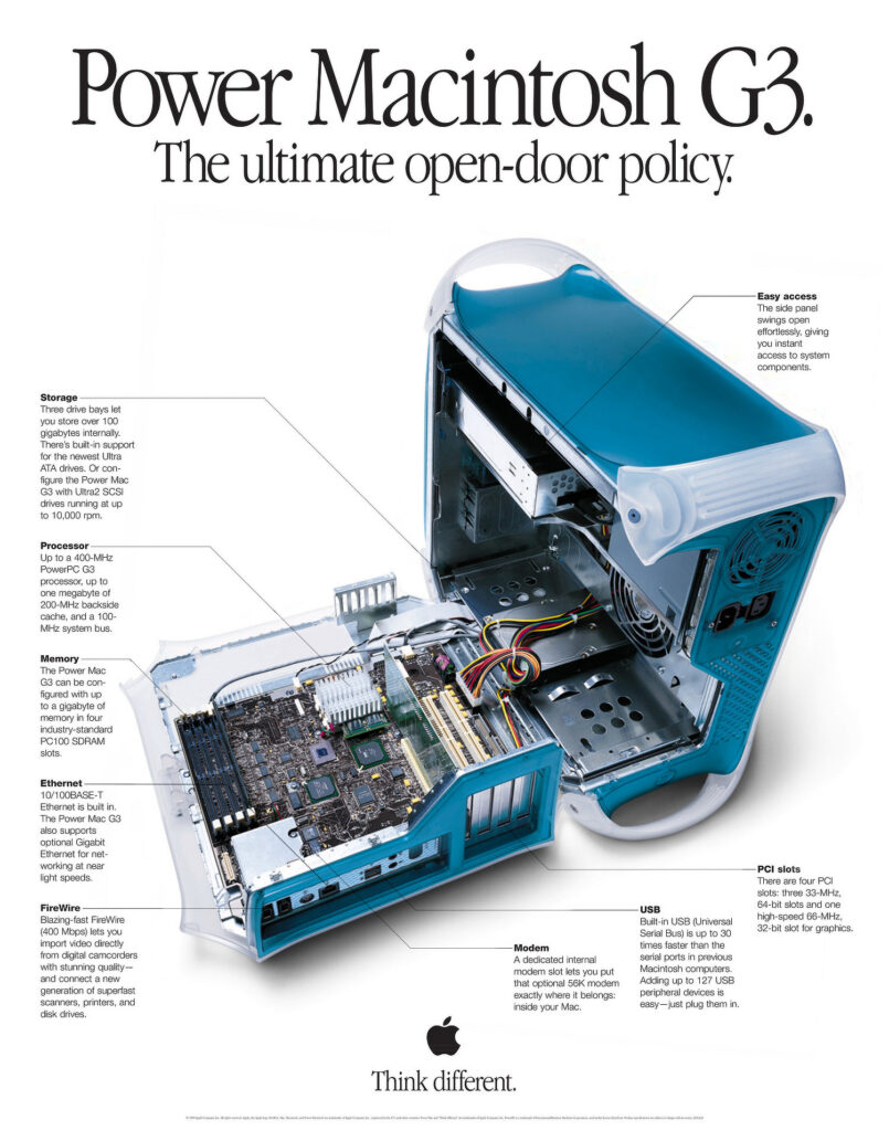 My choice, most certainly influenced by Apple’s subtle and effective marketing, fell on the brand new Blue and White Power Mac G3.